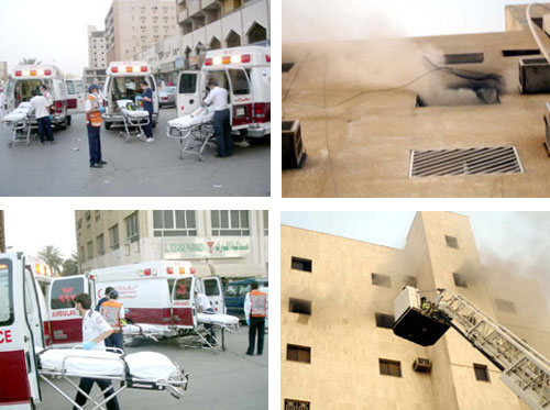 تواجد سيارات شفط الدخان وتزويد الأكسجين الخاص بالدفاع المدني.