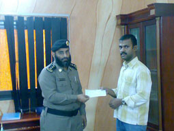 قدمت شرطة العرضية الشمالية مكافأة مدير الأمن العام لمقيم هندي أسهم في إلقاء القبض على مجهول يمني تخصص في سرقة بطاقات الصراف الآلي من كبار السن وابدالها لهم ببطاقات منتهية الصلاحية ويقوم بسحب أرصدتهم. وقدم النقيب عبدالعزيز الأسمري المكافأة مقرونة بشكر مدير الأمن العام.