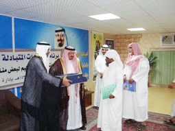 وقد ألقى جمعان قادي الغامدي كلمة المحتفى بهم وجه فيها شكره وتقديره لمدير التربية والتعليم ومساعده ولكل من أسهم بجهد في الإعداد والتنفيذ لهذه المناسبة، وفي ختام الحفل قام محافظ المخواة ومدير التربية والتعليم بتسليم أبناء مدير شؤون الموظفين بالإدارة المتوفى مسعود بن علي العمري يرحمه الله درعاً تقديرياً من الإدارة عرفاناً بالجهود التي بذلها والدهم.