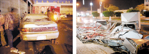 نجت عائلة من موت محقق نتيجة سقوط إحدى اللوحات الإعلانية عليهم أثناء مرورهم بالقرب منها، كما تسببت الأمطار والعواصف التى شهدتها مدينة بريدة مساء أمس في كثير من الأضرار وشلت الحركة في مطار القصيم الإقليمي، حيث تأخرت الرحلة القادمة من مطار الملك عبد العزيز الدولي بجدة