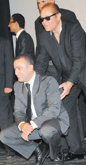 الممثل محمود عبدالعزيز وأحمد السقا أثناء حضورهما أمس الأول الاثنين للعرض الأول لفيلم (إبراهيم الأبيض) في دار الأوبرا بالقاهرة، الفيلم يطرح عالم الجريمة المنتشرة في العاصمة المصرية القاهرة.