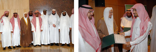 شهد معالي الشيخ صالح بن عبدالرحمن الحصين رئيس اللجنة الرئيسية لمركز الملك عبدالعزيز للحوار الوطني والرئيس العام لشئون المسجد الحرام والمسجد النبوي ومعالي مدير جامعة أم القرى الدكتور وليد بن حسين أبو الفرج الحفل الختامي لدورة المدرب المعتمد لنشر ثقافة الحوار التي أقامها المركز بالتعاون مع كلية الدعوة وأصول الدين بالجامعة وذلك بقاعة الملك عبدالعزيز التاريخية بمقر الجامعة بالعابدية.