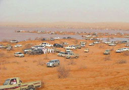 يتمتع مساء الجوف هذه الأيام بأجواء لطيفة ونسمات باردة تساعد على الخروج خارج المدينة وقد أنعشت الأجواء اللطيفة إضافة إلى المستنقعات التي كونتها مياه الأمطار التي هطلت بغزارة الأيام الماضية على الجوف وشكلت مستنقعات كبيرة من المياه على خروج المواطنين للتنزه برياً بجوار المستنقعات والسهر بجوارها، وخاصة في إجازة الأسبوع كما يحضر عدد من المتنزهين من المناطق المجاورة. وقد بين المدير التنفيذي لجهاز السياحة بالجوف حسين بن علي الخليفة أن أجواء المنطقة هذه الأيام مساء تتمتع بنسمات باردة خاصة بجوار مستنقعات مياه الأمطار وخاصة مويسن الواقعة بين سكاكا ودومة الجندل، حيث تتمتع بمستنقع كبير من المياه وتضاريس مهيأة للجلوس بجوارها ووجود الكثبان الرملية (الطعوس), وقال إن الكثير من العوائل والشباب تحفزهم هذه الأجواء للخروج والتنزه البري حيث يجتمع يومياً مئات المتنزهين بجوار هذه المستنقعات للاستماع بهذه الأجواء, وقال الخليفة إن المتنزهين يقومون يتحضير جلسة برية بجوار المستنقعات وتحضير الشاي والقهوة العربية وبعض المأكولات التي اشتهر بها الأهالي عند خروجهم للتنزه البري كالجمري ودفن الخضار داخل الجمر وفي الليل يقومون بتحضير وجبة العشاء وتناولها بالمكان نفسه.
