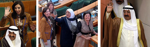 واعتبر في هذا الإطار العلاقة المتوترة بين السلطتين التشريعية والتنفيذية من أهم أسباب الأزمات ودعا إلى (تطوير العلاقة بينهما فيما يعالج العثرات والاختناقات التي تعرقل مسيرة العمل الوطني).. وهنأ أمير الكويت النساء الأربع اللواتي دخلن مجلس الأمة وحققن نصراً تاريخياً للمرأة الكويتية بعد أربع سنوات من منحها حقوقها السياسية.