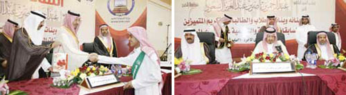 عقب ذلك تم تكريم الطلاب المتميزين في المسابقات التربوية والتعليمية على مستوى المملكة.