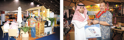 احتلت سلسلة كوفي شوب (ماوي واوي) مكانا مرموقا في معرض الفرنشايز الذي استضافته مدينة الرياض خلال الأيام الفائتة، وتميز جناح سلسلة كوفي شوب (ماوي واوي) بتصميمه الخشبي الفريد، وأعواد الخوص المتدلية منه، حيث تجد العاملين الذين توشحوا قلائد من ورود على طريقة سكان جزيرة هاواي, وبادرونا بعبارة التحية الشهيرة