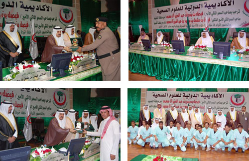 شرف صاحب السمو الملكي الأمير فيصل بن بندر بن عبد العزيز أمير منطقة القصيم وبحضور صاحب السمو الملكي الدكتور الأمير فيصل بن مشعل بن سعود بن عبد العزيز نائب أمير المنطقة حفل تخريج الدفعتين الثامنة والتاسعة من طلاب الأكاديمية الدولية للعلوم الصحية ببريدة والرس وذلك بمركز الملك خالد الحضاري ببريدة.