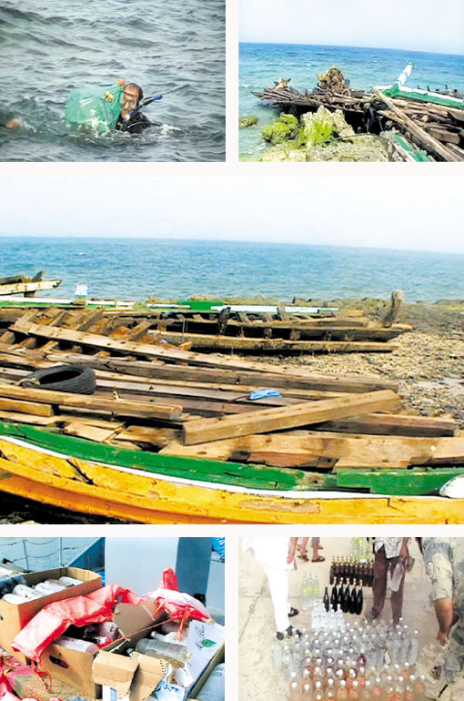 وعلى الفور قامت دوريات حرس الحدود البحرية السعودية بتجميع والتقاط ما يطفو على سطح البحر من بقايا حمولة السفينة المذكورة. حيث عثرت الدوريات على كميات كبيرة في مواقع مختلفة وعلى شواطئ بعض الجزر وذلك بفعل التيارات والأمواج البحرية، ما زاد عن 2000 قارورة كحول و1510 علبة بيرة.