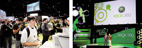 - بعض الزوار يمارسون ألعاب الفيديو في الجناح الخاص بمايكروسوفت. |