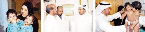 «الجزيرة» - أحمد القرني: نقل وزير الصحة، رئيس الفريق الطبي والجراحي لعمليات فصل التوائم السيامية الدكتور عبدالله بن عبدالعزيز الربيعة تحيات واهتمام خادم الحرمين الشريفين الملك عبدالله بن عبدالعزيز (حفظه الله) بالحالة الصحية للطفلتين المغربيتين السياميتين (سعيدة وعزيزة).. والذي وجه (أيده