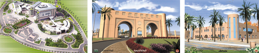 ويتضمن: المنطقة الأكاديمية، المناطق السكنية، المباني الخدمية، مجمع الكليات الصحية، (ويربط بين المنطقتين محور أخضر رئيسي للمشاة وتتوزع عليه المباني على الجانبين).
