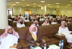 نيابةً عن رئيس الجمعية الخيرية لتحفيظ القرآن الكريم في منطقة الرياض الشيخ سعد بن محمد آل فريان افتتح نائب رئيس الجمعية الشيخ عبدالرحمن بن عبدالله الهذلول ملتقى الدورات الصيفية بقاعة المحاضرات الكبرى بمقر الجمعية بحي السليمانية بحضور الأمين العام للمجلس الأعلى للجمعيات الخيرية لتحفيظ القرآن الكريم بوزارة الشؤون الإسلامية والأوقاف الشيخ عبدالله بن حمد المزروع. وبدأ الحفل بكلمة الشيخ الهذلول أوضح فيها أهمية استثمار الإجازة الصيفية فيما يعود على الجميع بالنفع، موضحاً أن من فوائد الدورات أنها تنظم أوقات الناس في الإجازة؛ فبدلاً من سهر الليل ونوم النهار فإن الدورات الصيفية تتميز بالأنشطة من الفجر في الحفظ والدروس، مؤكداً الهذلول أن هذه الدورات لها دور كبير في الحد من الجريمة وحماية المجتمع من الفساد والأخطار، كما تساهم في تنشئة الشباب على الفضيلة والصلاح والتقى.
