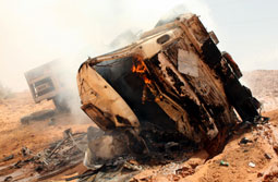 لقي شخص يبلغ من العمر 45 عاماً حتفه متفحماً وأصيب آخر بإصابات مختلفة في حادث مروري وقع ظهر أمس الأول بين شاحنتين على طريق الزلفي القصيم، ونتج عن الحادث تلفيات جسيمة في السيارتين وباشر الحادث مدير شعبة مرور الزلفي المقدم زيد بن محمد السديري والرقيب فهد الوزان وفرقة الشرطه وفرقة الدفاع المدني وفرقة هيئة الهلال الأحمر السعودي.