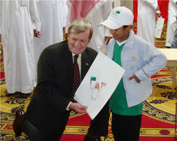 احتفت القنصلية الأمريكية بالطالب صفوان جميل القثامي لمشاركته بلوحة فنية جسدت الترابط والتلاحم السعودي الأمريكي، حيث كرّم القنصل العام الأمريكي بجدة السيد مارتن آر كوين الطفل صفوان جميل حامد القثامي ووصف إعجابه بما قدّمه من مشاركة أبرزت الجانب التراثي والثقافي في المملكة العربية السعودية والولايات المتحدة الأمريكية إلى جانب عكسها جانب تعزيز روح العلاقة لدى أبناء المملكة العربية السعودية. من جانبه أوضح مدير التربية والتعليم للبنين بالطائف محمد سعيد أبو رأس أن مشاركة الطالب صفوان القثامي كانت ضمن مشاركات خمسين طالباً من طلاب التعليم العام شاركوا ضمن فعاليات المهرجان الثقافي التجاري السعودي الأمريكي ويعد هذا الاحتفاء تكريماً للطالب وإبرازاً للنشاط المتميّز الذي يتميّز به تعليم البنين بالطائف.
