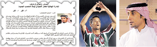 اعتمد رئيس مجلس إدارة نادي الهلال الأمير عبد الرحمن بن مساعد التشكيل الإداري الجديد لإدارة كرة القدم والتي تم رفع تقاريرها من مدير عام إدارة الكرة سامي الجابر والتي أكدت ما تميّزت به (الجزيرة) في عددها الصادر يوم الثلاثاء الماضي، حيث تم تعيين هشام اللحيدان منسقاً إدارياً للفريق الأول وسيكون حلقة الوصل بين مدرب الفريق واللاعبين, كما تم تنصيب فيصل الفرشان منسقاً للفريق الأولمبي على أن يتولى ذات المهام التي كلف بها اللحيدان على صعيد الفريق الأولمبي الأزرق وهو ما تميزت به (الجزيرة) أيضاً.