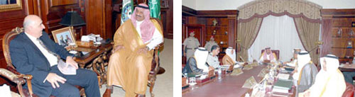 من جهة ثانية استقبل صاحب السمو الملكي الأمير خالد بن سلطان بن عبدالعزيز مساعد وزير الدفاع والطيران والمفتش العام للشؤون العسكرية بمكتب سموه بالمعذر أمس السفير البريطاني لدى المملكة السيد وليام باتي. وجرى خلال الاستقبال تبادل الأحاديث الودية ومناقشة عدد من المواضيع ذات الاهتمام المشترك. حضر الاستقبال الملحق العسكري البريطاني لدى المملكة العميد قريم موريسون.