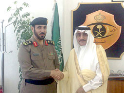 تلقى مدير شرطة منطقة الحدود الشمالية اللواء حمود بن صالح المنصور تهاني وتبريكات صاحب السمو الأمير منصور بن عبدالله بن عبدالعزيز بن مساعد آل سعود رئيس لجنة الأهالي للاحتفالات والمناسبات بالمنطقة وذلك بمناسبة ترقيته إلى رتبة (لواء)، وقد عبر المنصور عن شكره وتقديره لهذه اللفتة المباركة من لدن سموه، متمنياً لسموه الصحة والعافية. أوضح ذلك الناطق الإعلامي بشرطة منطقة الحدود الشمالية العقيد بندر الايداء.