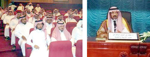 نظمت إدارة التربية والتعليم بمحافظة الخرج لقاءً مفتوحاً لمدير التربية والتعليم بمحافظة الخرج الدكتور سعود الزهراني مع منسوبي الإدارة، حيث بدأ اللقاء بكلمة لمدير التربية والتعليم بالخرج رحب فيها بموظفي الإدارة واستعرض إنجازات أصحاب العطاءات المستمرة وتحدث د. الزهراني عن رسالة محافظ الخرج صاحب السمو الملكي الأمير عبدالرحمن بن ناصر والتي شكر فيها جميع العاملين في الإدارة نتيجة جهودهم المستمرة ومنجزاتهم الواضحة العيان وشكر الزهراني كلّ موظف ضحى بوقته من أجل الانجاز وحقق أهداف وغايات عمله وكلّ موظف عمل خارج وقت الدوام الرسمي ليتم مهام عمله ويحقق إنجازاً مقدّراً.