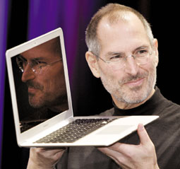 ستيف جوبز رئيس شركة (أبل) يحمل جهاز لاب توب في صورة ارشيفية بداية العام الماضي 2008. وقال جوبز في اول تصريح له بعد عودته من اجازته المرضية ان شركته قد باعت اكثر من مليون جهاز أي فون الجديد خلال ثلاثة ايام موضحاً ان 6 ملايين زبون قاموا بتنزيل برنامج اي فون الجديد في الايام الخمسة الاولى لاطلاق الجهاز.