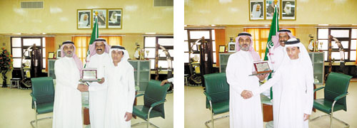 كرم مدير عام التربية والتعليم للبنين بمنطقة جازان شجاع بن محمد بن ذعار الطالبين وسيم بن وحيد زاهر وعبد الرحمن إسماعيل مباركي الفائزين بالمركز الأول للمرحلة المتوسطة في مسابقة الخامات المستهلكة على مستوى الإدارات التعليمية بالمملكة والتي استضافتها إدارة التربية والتعليم للبنين بمحافظة عنيزة.