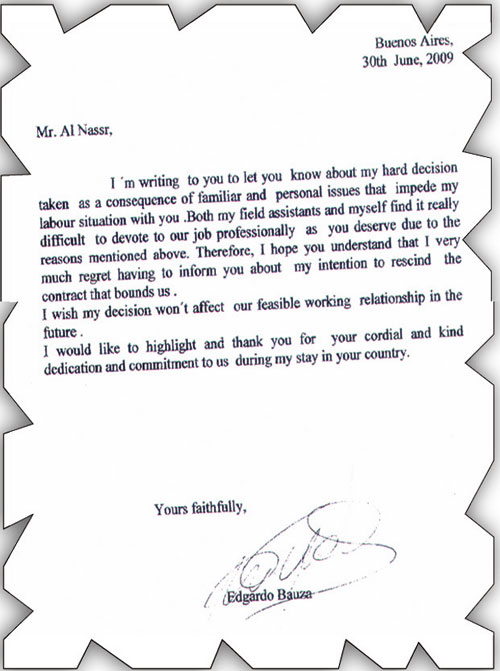 الجزيرة - الرياض: بث نادي النصر أمس صورة من خطاب اعتذار المدرب الأرجنتيني إدغاردو باوزا عن قيادة الفريق الكروي. وتذرع المدرب فيه بظروفه الأسرية موضحاً أنه يتمنى العودة للعمل في النادي متى زالت تلك الظروف.