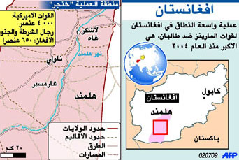 شنت قوات مشاة البحرية الامريكية (المارينز) صباح أمس الخميس عملية واسعة النطاق ضد طالبان في ولاية هلمند بجنوب البلاد. وجاء في بيان لكتيبة الحملة العسكرية التابعة لسلاح للمارينز في افغانستان ان العملية (خنجر) تضم حوالي أربعة آلاف أمريكي بالإضالة إلى650 شرطياً وعسكرياً أفغانياً. وتشارك في العملية حوالي50 طائرة وهي تهدف إلى إدخال القوات إلى مواقع طالبان في الجنوب. وهذه العملية، حسب الضباط على الأرض، هي أكبر عملية مجوقلة تشنها قوات المارينز منذ حرب فيتنام. وقال الجنرال لاري نيكولسن، قائد الحملة العسكرية، في بيان أن (عملية خنجر تختلف عن العمليات التي شنت سابقا من حيث حجم القوات وسرعتها). وهي أول عملية واسعة النطاق التي تشنها قوات المارينز منذ انتشارها خلال الأشهر الماضية في أفغانستان. وسوف تدخل قوات المارينز إلى وادي نهر هلمند في عمق المناطق التي تسيطر عليها طالبان حيث لم تنجح القوات الدولية في الدخول إليها. وأوضح مسؤولون عسكريون أمريكيون أن عملية خنجر تهدف إلى دحر طالبان في المنطقة. وقال الجنرال نيكولوسن لرجاله خلال لقاء مع الصحافيين في معسكر ليثرنيك (إنها خطة مهمة، خطة تعتريها مخاطر). وكان قال الأسبوع الماضي إن الهجوم سوف يستمر 36 ساعة في مرحلته الأولى الهجومية وسيفرض الأمن في وادي هلمند قبل انتخابات20 أغسطس. من جهته أعلن الجيش الأمريكي في أفغانستان أمس أن جندياً أمريكياً فقد منذ ثلاثة أيام وقع على الأرجح في الأسر بأيدي مقاتلي طالبان.