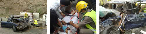 وقد باشر الحادث فرقة من مركز الدفاع المدني وعملت على إخراج المصابين المحتجزين بين ركام الحديد في السيارات المتصادمة في زمن قياسي اضافة لفرق الهلال الأحمر التي نقلت المصابين إلى المستشفيات القريبة بينما تولت الدوريات الأمنية استلام الحادث والتحقيق في ملابساته. يأتي الحادث بعد حادث مؤلم مشابه سبقه بأربع وعشرين ساعة بين ثلاث سيارات على الطريق نفسه نتج عته اصابات مختلفة، وناشد السكان الجهات المختصة بالوقوف على طرق المحافظة التي تحتاج إلى إعادة نظر وسرعة افتتاح مركز للمرور بالمحافظة لتنظيم المرور ومتابعة المتهورين والمخالفين.