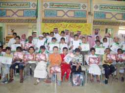 بحضور مدير التربية والتعليم بمحافظة شقراء عبد العزيز عبد الله المسند ومشرف التربية الخاصة بالإدارة حمد بن إبراهيم السماعيل أقامت مدرسة الشيخ محمد بن عبد الوهاب الابتدائية بشقراء حفل تكريم للطلبة المتفوقين دراسياً لجميع الصفوف الدراسية من الصف الأول وحتى السادس، وقد شارك في الحفل عدد من المشرفين التربويين ومعلمي المدرسة وبعض أولياء الأمور حيث تخلل الحفل بعض الكلمات والمشاركات من الحضور، كما هنأ المسند الطلبة المتفوقين بالمدرسة على ما بذلوه من جهد خلال العام الدراسي ومؤكداً للجميع أهمية الاهتمام بالمدرسة والمتابعة للحصول على أفضل الدرجات، داعياً لجميع المتفوقين الاستمرار في تفوقهم ولزملائهم بالتفوق. بعد ذلك شكر مدير المدرسة يوسف الشايع مدير التعليم والحضور على مشاركة أبنائهم فرحة التفوق في هذا الحفل الذي تقيمه المدرسة في كل عام لتكريم المتفوقين من أبنائها، كما شارك الطلبة في تكريم معلميهم المنقولين من المدرسة وهم وليد محمد الصفق واسماعيل ابراهيم وكذلك الجمعية الخيرية لمساهمتها مع المدرسة ومثلها عبد الله الفلاح.