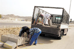 ما زال عدد من العمالة تزاول سرقة مواد بناء الأرصفة وأغطية الصرف الصحي الحديدية أمام تلكؤ الجهات المعنية في المحافظة في اتخاذ موقف حازم لهؤلاء اللصوص.