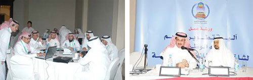 ذكر ذلك مدير عام شؤون المعلمين د. حمد بن ناصر الوهيبي، وأشار إلى أن ورشة العمل تأتي بتنظيم من وكالة الوزارة للشؤون المدرسية ممثلة بالإدارة العامة لشؤون المعلمين, وقد شارك في ورشة العمل نخبة من العاملين بالميدان التربوي من مختلف مناطق المملكة (بنين - بنات), كما شارك في ورشة العمل خبراء من خارج قطاع الوزارة، بالإضافة إلى أعضاء لجنة إعداد الآلية المقترحة لتطوير نظام تقويم الأداء الوظيفي برئاسة الدكتور عبد الرحمن المديرس مدير عام التربية والتعليم بالمنطقة الشرقية, حيث بدأت فعاليات ورشة العمل من الساعة الثامنة صباحاً واختتمت في تمام الساعة الثالثة بعد الظهر, وانتهت الورشة إلى العديد من الاقتراحات والتوصيات التي توصل إليها المشاركون عن طريق تجميع البيانات إلكترونيا, وسوف يتم رفعها إلى لجنة تطوير آلية تقويم الأداء الوظيفي لدراستها وتحليلها والاستفادة من نتائج الورشة في أعمال اللجنة.