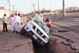 ومن المعلوم أن هذه الحفرية موجودة منذ عدة أشهر وأصبحت مصيدة للمشاة والسيارات ويمتد طولها لعدة أمتار وسط أحد الشوارع الرئيسة في الحي المكتظ بالسكان.