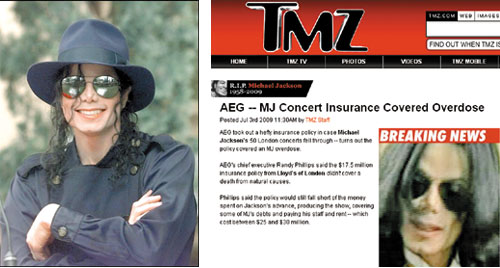 حظي موقع TMZ.com الترفيهي بنجاحات كبيرة منذ إطلاقه في السنوات الأربع الماضية، ولكنه أحرز نجاحًا خاصًا مؤخراً عندما انفرد بنشر خبر وفاة نجم موسيقى البوب الأمريكي مايكل جاكسون، واستطاع بذلك أن يسبق كافة وسائل الإعلام، بل إنه سبق حتى الموظفين الرسميين المسئولين عن نشر