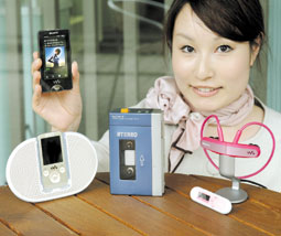 موظفة بشركة سوني للإلكترونيات تعرض نماذج لمشغلات الموسيقى (واك مان) بالإضافة إلى أحدث إنتاج الشركة من مشغلات الموسيقى الرقمية في مقر الشركة الرئيس بالعاصمة طوكيو. وكانت سوني قد أطلقت (الواك مان) قبل ثلاثين عاما الأمر الذي أحدث ثورة تقنية في طريقة الاستماع للموسيقى. وقد باعت سوني ما يقرب من 50 مليون