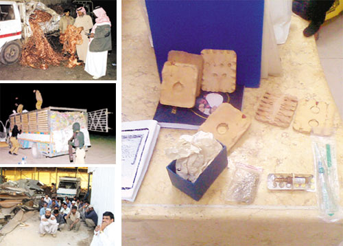 اعترف الجناة لفرق البحث والتحري بقوة المهمات والواجبات الخاصة امتهانهم سرقة الممتلكات العامة ومنازل المواطنين تحت الإنشاء عثر بداخل المستودع على مجموعة من النحاس والكيابل الكهربائية ومجموعات كبيرة من المسروقات ومزاولتهم لتمرير المكالمات للخارج للعمالة الوافدة بطريقة غير نظامية.