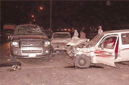 تسبب متهور قاطعاً للإشارة المرورية في حادث تصادم بين سبع سيارات وذلك على طريق الطرفية شمال مدينة بريدة حيث نتج عن الحادث وفاة شاب يبلغ من العمر (16 سنة) فيما أصيب آخرون إصابات حرجة تم نقلهم مباشرة عن طريق جمعية الهلال الأحمر لمستشفى الملك فهد التخصصي.