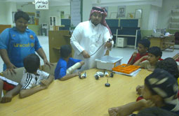 نظم نادي الملك عبدالعزيز الصيفي بتبوك دورات تدريبية لطلاب النادي على الروبوت (الرجل الآلي) وذلك ضمن برامج النشاط العلمي في النادي.