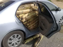 ضبطت دوريات المجاهدين بمحافظة العارضة بجازان سيارة بداخلها 1910 حزمة قات.