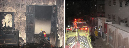 واتضح وجود غلام داخل الشقة المحترقة مصاب بإعاقة ذهنية وحركية ويعاني من مرض وراثي (منغوليا) وقد تم إخراجه من الشقة وأعطى لإسعافات الأولية من قبل فرق الهلال الأحمر وتم نقله إلا أنه توفي متأثرا بالاختناق من جراء استنشاقه لدخان الحريق، علما أنه لم يتعرض لأية حروق من جراء اندلاع الحريق داخل الشقة.