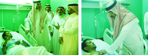 وقد نقل اللواء البريق تحيات سمو النائب الثاني وزير الداخلية وسمو نائبه وسمو مساعده للشؤون الأمنية ومدير عام الأمن العام وتمنياتهم له بالشفاء العاجل.