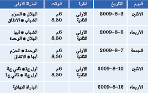اعتمدت اللجنة المنظمة لبطولة النخبة الدولية الثانية التي ستقام في أبها ابتداء من الاثنين 12 شعبان جدول المباريات. وستقام منافسات البطولة بواقع مباراتين يومياً, وسيقص فريقا الهلال والحزم شريط المباريات في الساعة السادسة مساء.