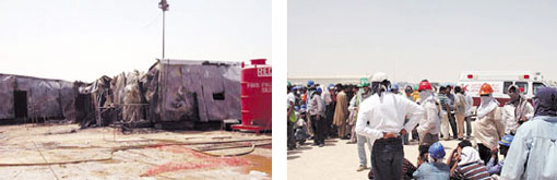 في موقع آخر في الخرسانية، وبعد نشوب حريق بسكن عمال تابع لشركة اتحاد المقاولين على بُعد 65 كلم من الجبيل ولقي فيه ستة أشخاص مصرعهم حرقا، نشب حريق آخر في اليوم التالي.