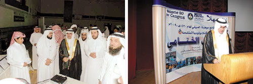 برعاية الدكتور عبد الحفيظ بن محمد فدا وكيل الجامعة للشؤون الأكاديمية وحضور الدكتور خالد الرابغي مدير عام البرامج بمؤسسة الملك عبد العزيز ورجاله للموهبة والإبداع، اختتم برنامج موهبة الصيفي (التكنولوجيا المتقدمة) الذي نظمته جامعة الأمير سلطان بالتعاون مع مؤسسة الملك عبد العزيز ورجاله للموهبة والإبداع فعالياته ظهر أمس وكان الحفل قد بدأ بآي من الذكر الحكيم، ثم ألقيت كلمة الطلاب سطر فيها قصة 4 أسابيع كلها موهبة قصة 30 يوماً تخطى فيها الإبداع قوانين الجاذبية.ثم ألقى الدكتور عبد الحفيظ فدا كلمة نيابة عن مدير الجامعة أوضح فيها أن ما حققته الجامعة من إنجازات جاء نتيجة جهود رجال مخلصين من قادة هذا البلد وأبنائه وعلى رأسهم صاحب السمو الملكي الأمير سلمان بن عبد العزيز أمير منطقة الرياض ورئيس مجلس إدارة مؤسسة الرياض الخيرية للعلوم وصاحب السمو الأمير الدكتور عبد العزيز بن محمد بن عياف رئيس مجلس أمناء جامعة الأمير سلطان. وأضاف أن استضافة برنامج موهبة الصيفي بالتعاون مع مؤسسة الملك عبد العزيز ورجاله للموهبة والإبداع لم تأتِ من فراغ، بل من قناعة الجامعة بأن الشباب هم وقود التنمية وعليهم تعوِّل الدول في تقدمها، كما أنها تأتي امتداداً لدور الجامعة في خدمة المجتمع التي يقوم بها مركز خدمة المجتمع والتعليم المستمر ثم ألقى المهندس إبراهيم بن عبد الله الغملاس رئيس برنامج موهبة بجامعة الأمير سلطان كلمة أشار فيها إلى أن برنامج موهبة ما هو إلا حلقة موصولة من حلقات عهد التميز العلمي الذي قطعته جامعة الأمير سلطان على نفسها، والتي آلت أن تقف بهذا الوطن العزيز في مصافِّ الدول المتقدمة علمياً وتكنولوجياً، من خلال بناء أجيال من الرواد والمبدعين. وأضاف أن الأسابيع الثلاثة التي أمضاها الطلاب في البرنامج أثبتت حُسْنَ اختيار جامعة الأمير سلطان لأعضاء هيئة التدريس الذين أظهروا امتلاكَهم لمخزون متجدِّد من المهارة والإبداع، واستطاعوا أن يُحلقوا بهؤلاء البراعم الناشئين إلى آفاق غير محدودة من امتلاك ناصية التكنولوجيا وتطويعِها لأفكارهم المبدعة. وفي ختام الحفل كرم الدكتور عبد الحفيظ فدا الطلاب الموهوبين إضافة إلى فريق العمل في البرنامج مشيداً بالمجهودات التي بذلوها والتي أسهمت في نجاح البرنامج.
