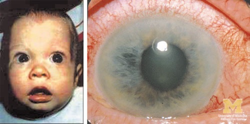- كبر حجم القرنية أو تغير لونها عند الأطفال (حالات الجلوكوما الخلقية).