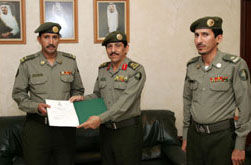 نيابة عن مدير عام الجوازات قام اللواء فهد بن عبد العزيز الحميدي مدير جوازات المنطقة الشرقية وبحضور الرائد عبد الله البشر مدير شئون الأفراد بتكريم رئيس رقباء سعود سيف الجعيد من جوازات الدمام ووكيل رقيب هندي بن مهل بتال الهاجري من جوازات مطار الملك فهد الدولي بالدمام وذلك لجهودهما المتميزة في أداء العمل، وتم تسليمهما شهادات شكر من مدير عام الجوازات.