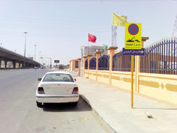 على الرغم من وجود لوحة تحذير بمنع الوقوف إلا أن هذه السيارة خالفت التعليمات المرورية القاضية بمنع الوقوف أمام المدخل الرئيسي لمدرسة تعليم القيادة بالرياض. |