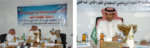 أجريت بمقر الاتحاد الرياضي السعودي لقوى الأمن الداخلي قرعة دورة خماسيات كرة القدم الرمضانية للقطاعات الأمنية التي ستقام على الصالة الرياضية بالدفاع المدني على هامش الاجتماع الفني بحضور رئيس الاتحاد اللواء مصطفى بن جار الله ورئيس اللجنة الفنية للدورة المقدم عبدالله الصوينع وأمين عام الاتحاد الرائد سلطان الودعاني ومديري الفرق المشاركة، وبدأ الاجتماع بكلمة ترحيبية لأمين عام الاتحاد أوضح خلالها أهداف عقد هذه الدورة، وشكرهم على حسن تجاوبهم بالمشاركة متمنيا للجميع التوفيق، وقال: (الاتحاد يعقد مثل هذه الأنشطة إيمانا منه بأن مثل اللقاءات الرياضية الأخوية بين منسوبي القطاعات الأمنية لها آثار إيجابية يعود نفعها بالمقام الأول على رفع المعدل اللياقي لرجل الأمن)، ثم ألقى اللواء مصطفى بن جار الله كلمة توجيهية لمديري الفرق أكد فيها حرص الاتحاد على عقد مثل هذه الدورات الرياضية، وقال: (هذه الدورة تساهم في رقي المجال الرياضي في وزارة الداخلية، وتوطيد العلاقات الطيبة والودِّ فيما بين رجال الأمن). وأضاف: (الاتحاد عقد العديد من الاجتماعات لضمان نجاحها، وإبرازها بالشكل المطلوب، ومشاركة ثمان فرق تمثل القطاعات الأمنية يساعد على زيادة التنافس الشريف لإحراز كأسها).