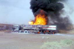 حالت القدرة الإلهية من احتراق مزارع قرية طابة القديمة بكاملها, أثر انفجار صهريج محمل بالوقود كان متوقفاً في القرية. وعلمت الجزيرة ان سبب الحريق يعود إلى قيام بعض العمالة المقيمة بالقرية القديمة من محاولة التعبئة من الصهريج وهو في حالة تشغيل مما أحدث اشتعالا قبل حدوث الانفجار, الذي صعدت فيه كثافة الأدخنة عالياً, أدى إلى مشاهدتها من مسافاتٍ بعيدة, فيما برر بعض العمالة الموجودة بالموقع بأن السبب يعود إلى وجود خلل في كوابح الصهريج حين نزوله للقرية القديمة مما سبب شراراً نتج عنه احتراق بسيط ثم الانفجار .