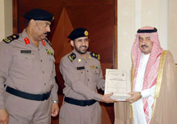 استقبل صاحب السمو الملكي الأمير فيصل بن بندر بن عبدالعزيز أمير منطقة القصيم أمس في مكتب سموه بمقر ديوان الإمارة بمدينة بريدة مدير شرطة المنطقة اللواء عبدالقادر بن عبدالباقي طلحة يرافقه المقدم أحمد بن علي البشري والذي قدم لسموه أطروحة الدكتوراه بعنوان (نحو بناء نموذجي تطبيقي للشرطة المجتمعية بالمملكة العربية السعودية) من جامعة نايف العربية للعلوم الأمنية، وقد شكر سموه المقدم البشري على جهوده الموفقة في هذه الأطروحة القيمة متمنياً سموه له التوفيق والنجاح المستمر.