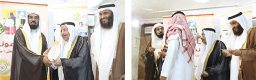 عقب ذلك سلم فضيلته العرسان شيكات المساعدات المالية وفي نهاية الحفل قدمت الجمعية الخيرية لمساعدة الشباب على الزواج والتوجيه الأسري بجدة درعاً تذكارياً لفضيلة الشيخ سلمان العودة بهذه المناسبة.