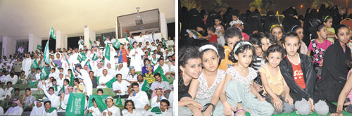 كما امتلأ الاستاد بالأطفال والدمى والمهرجين معبرين عن فرحتهم وابتهاجهم بهذا اليوم المجيد. وبعد ذلك استمتع الحضور بعروض الليزر مصحوبة بمؤثرات صوتية تتمازج مع عدد من الفقرات المرئية عن الوطن والعيد وعدد من الأناشيد الوطنية، إضافة إلى قصيدة بمناسبة اليوم الوطني بعنوان (يوم الوطن).